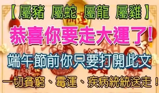 【屬豬 屬蛇 屬龍 屬雞】恭喜你要走大運了!端午節前你只要打開此文,一切貧窮、霉運、疾病統統送走!