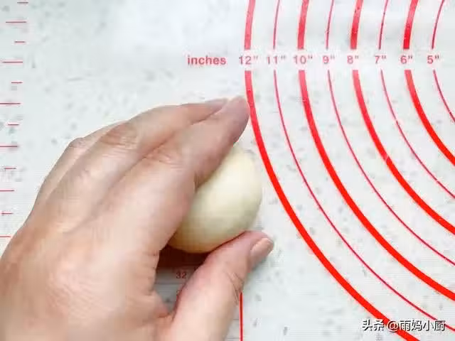 10、鬆弛好的麵糰,再次用手搓圓,收口往下放入烤盤裡,再次發酵。