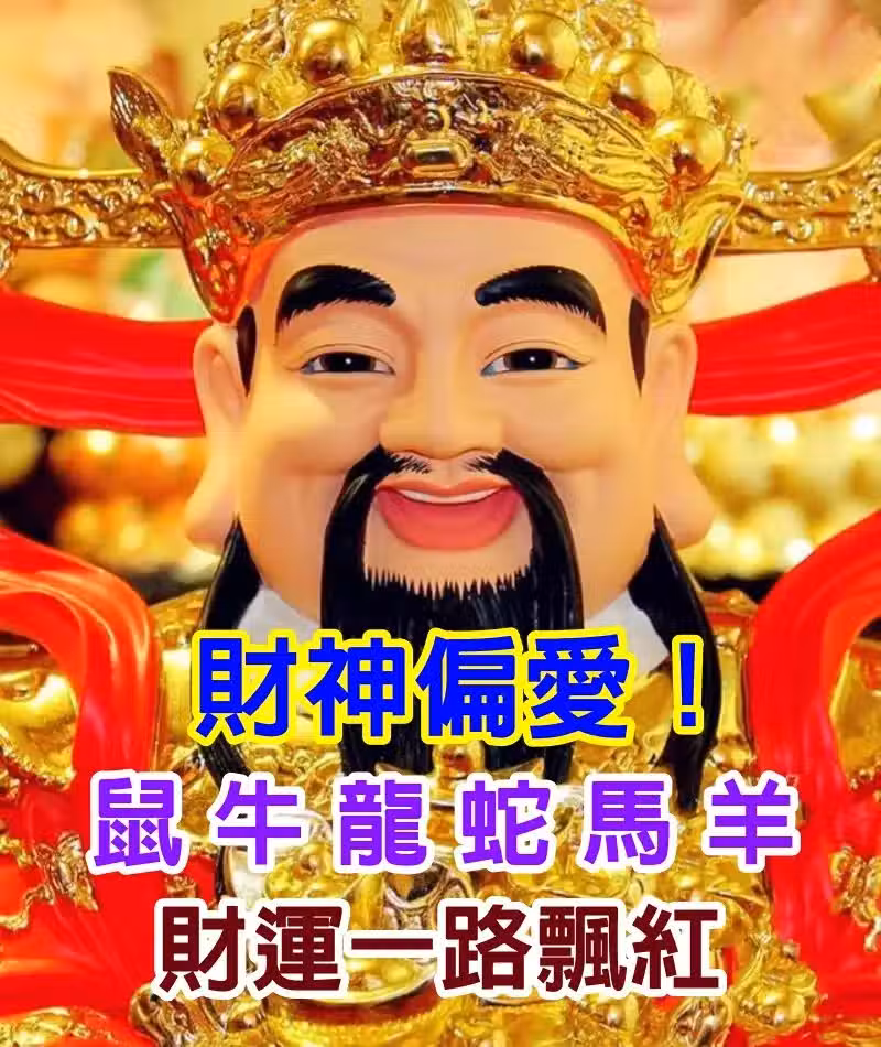 生肖鼠、牛、龍、蛇、馬、羊,財神偏愛,財運一路飄紅,偏財正旺雙喜臨門