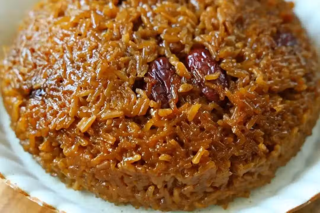 製作配料:糯米500克 紅棗適量 葡萄乾適量 紅糖適量