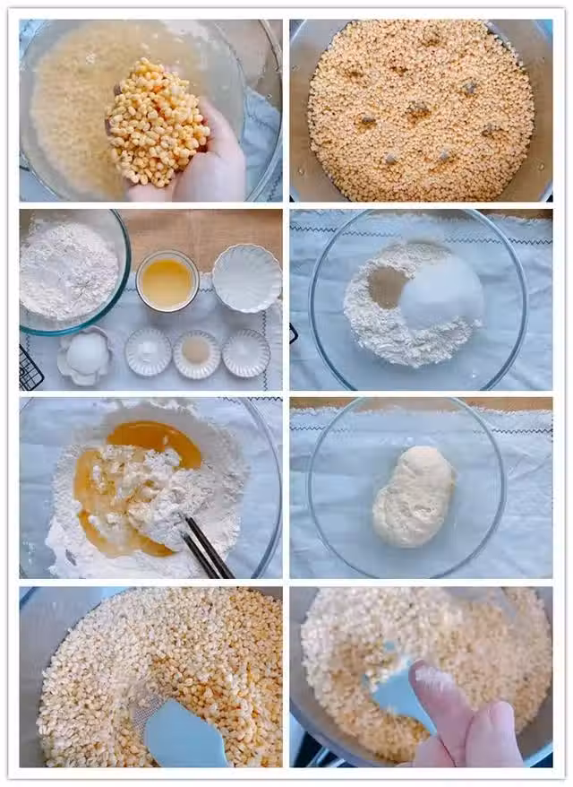 只要把所有材料翻拌均勻,不用炒餡,這個綠豆泥餡料就準備好了,準備好之後,將它分成大約40g每個,一共能分30個左右,這裡的重點就是綠豆一定要用蒸的,才能省去翻炒去除水分的步驟,如果用煮的,綠豆泥太軟,就做不成這個軟皮綠豆餅。