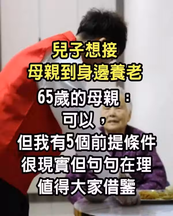 兒子想接母親到身邊養老,65歲的母親:可以但我有5個前提條件,很現實但句句在理,值得大家借鑒!