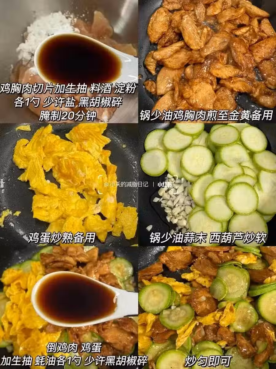 西葫蘆半根、雞胸肉、雞蛋、蒜