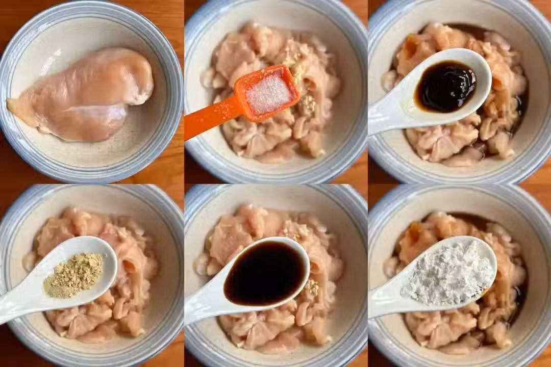 2、抓拌均勻之後加入一些食用油鎖住水分,冰箱冷藏腌制一晚。