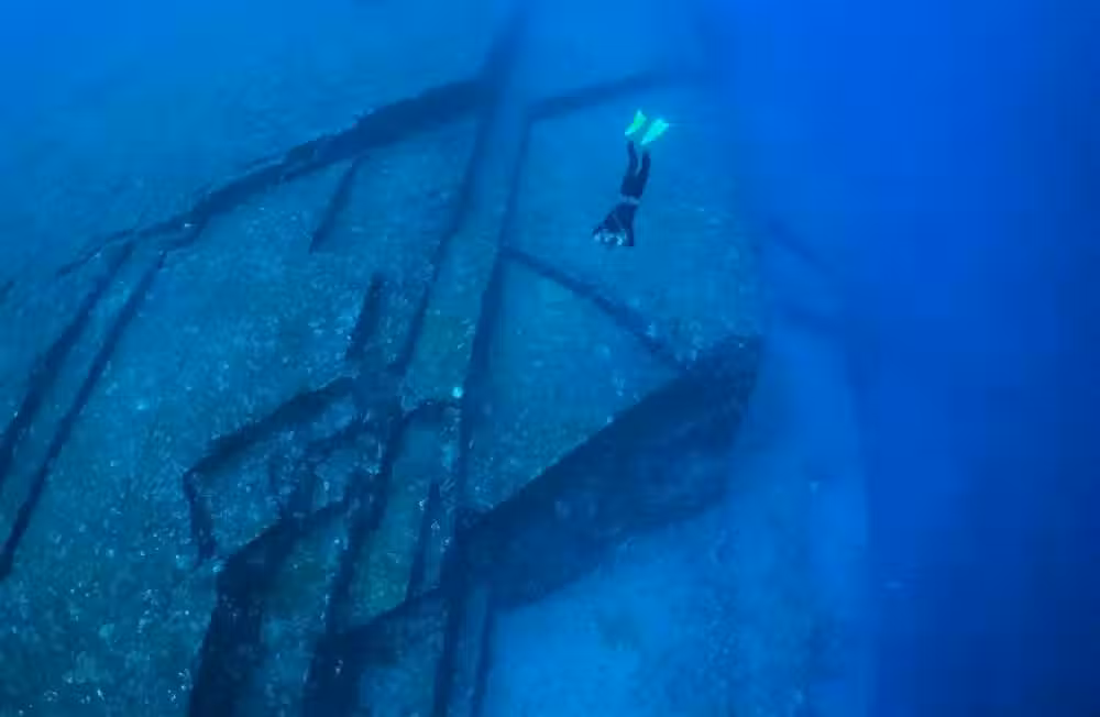 近日,在日本最西端的那國島附近,一名叫新嵩喜八郎的日本潛水員意外發現了一片龐大且雄偉的巨型岩石層,這個岩層的建築結構類似金字塔階梯,並且有著類似人類切割後的痕跡。