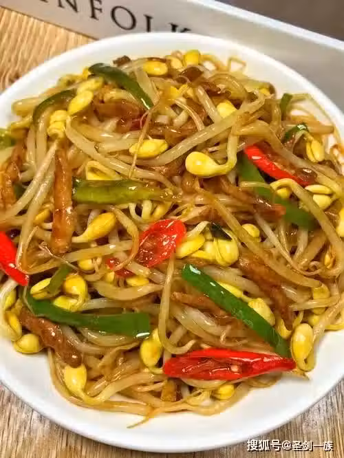 4,倒入豆芽菜轉中火翻炒均勻,倒入少許的米醋翻勻裝盤。