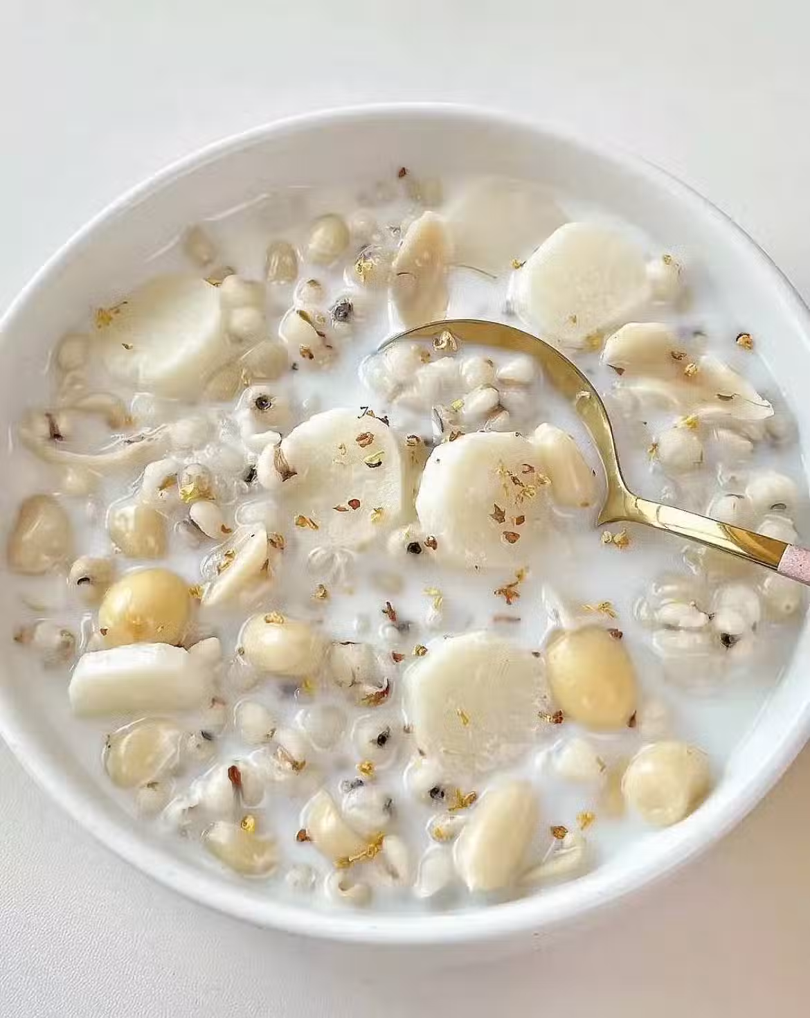轉小火慢燉,大約30分鐘,直到薏米和蓮子開始變軟。