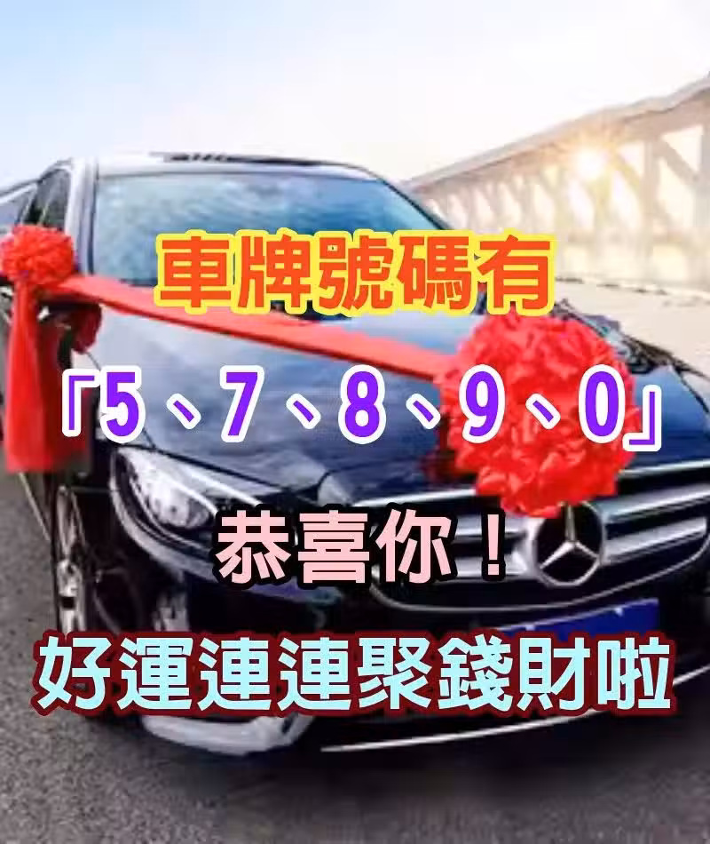 家裡車牌號碼有5、7、8、9、0 注意啦,恭喜你:好運連連,聚錢財
