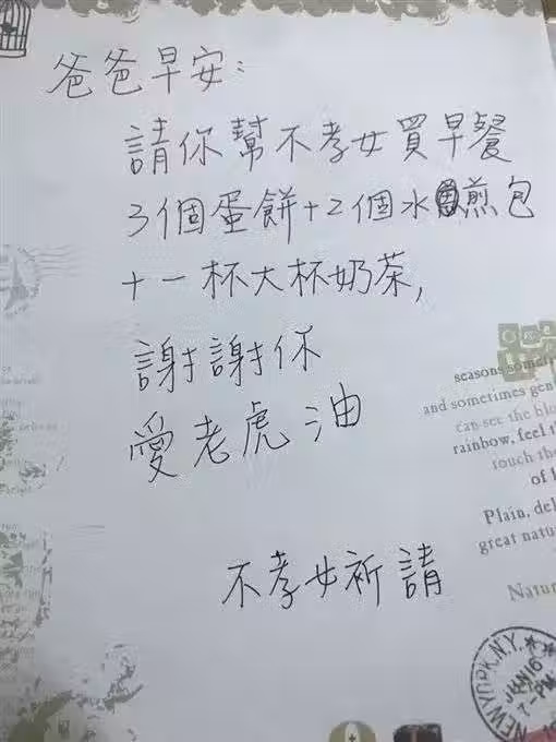 跟爸爸起口角!她隔天撒嬌留字條「請幫不孝女買早餐」 爸爸呆萌買完「發現誤會大了」父女倆笑翻和好!