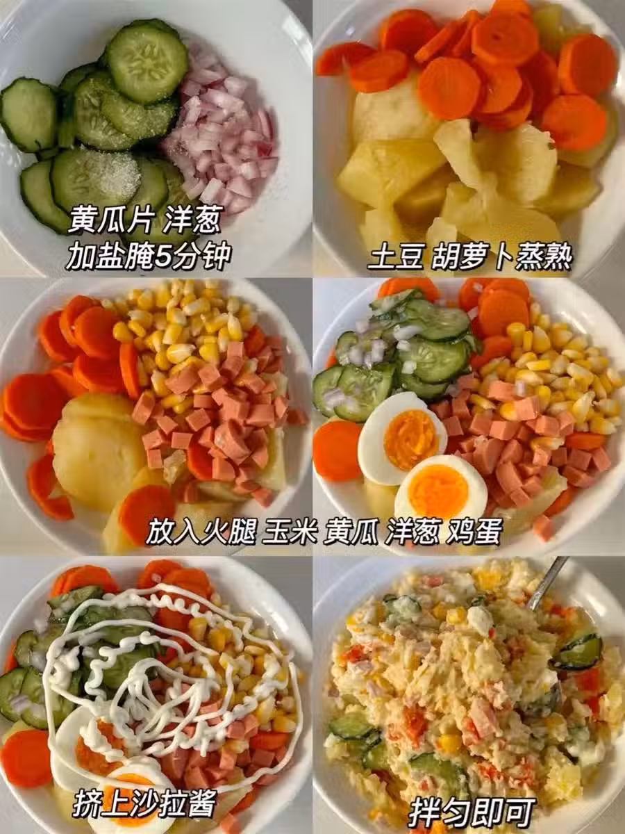 胡蘿卜和黃瓜焯熱後要迅速撈出並瀝干水分,避免水分過多影響土豆泥沙拉的口感;