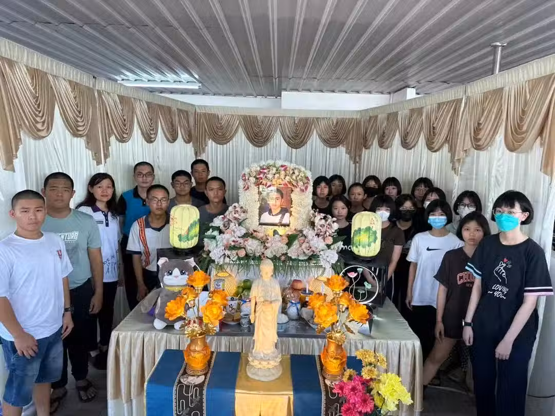 學校的老師與同學獲知何鍏勁逝世噩耗後,前來喪府瞻仰遺容及慰問家屬。(家屬提供)