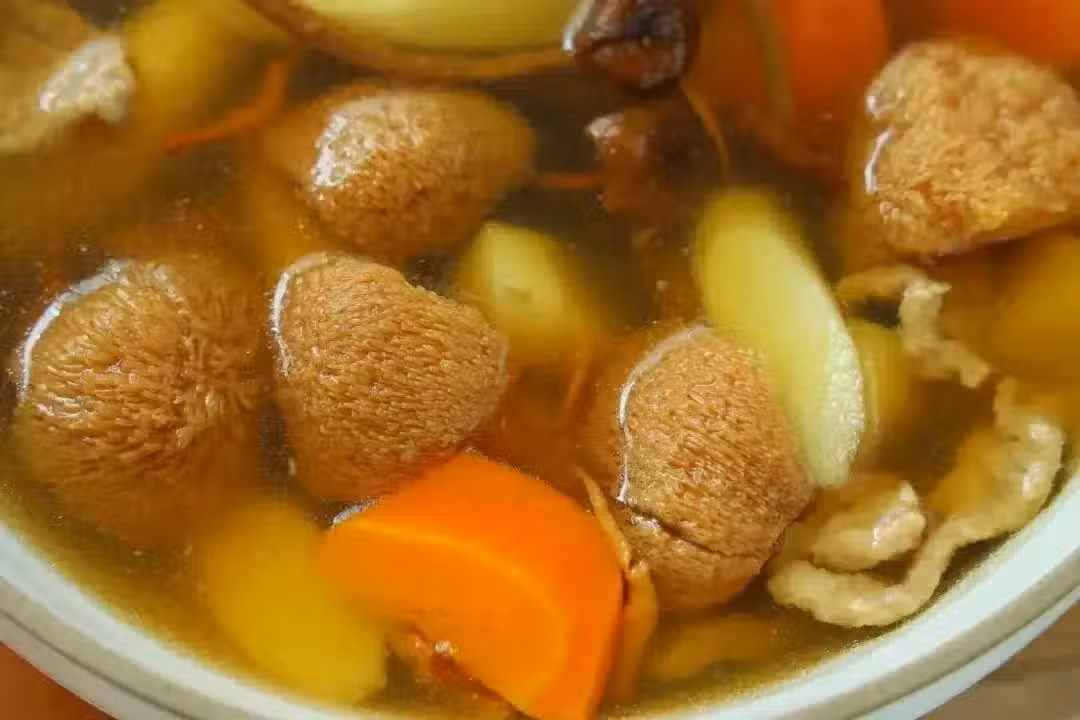 這款猴頭菇山藥瘦肉湯,不僅是一道美味的佳肴,更是一幅色彩斑斕的畫卷。橙紅的胡蘿蔔、潔白的山藥、各色菌菇,以及嫩滑的肉片,在清澈的湯底中交相輝映,讓人賞心悅目。