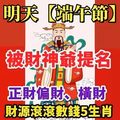 明天【端午節】被財神爺提名,正財偏財、橫財,財源滾滾數錢