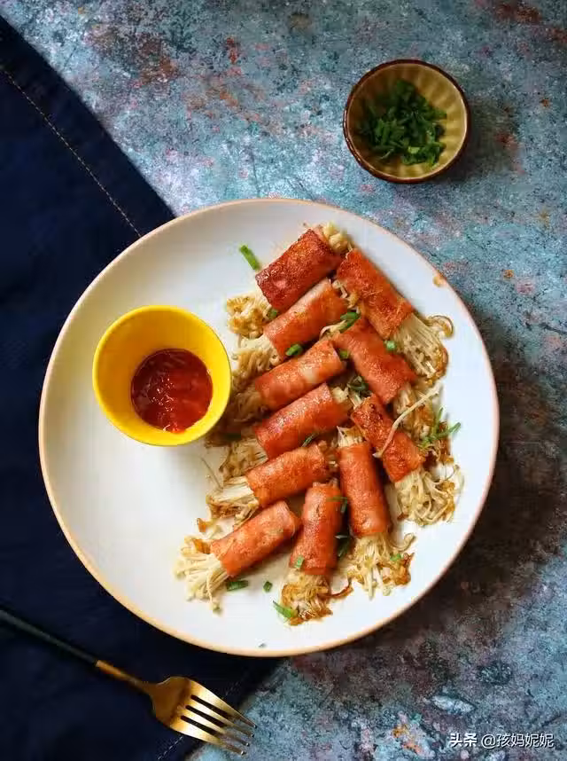 這道菜好多人都愛吃,培根焦焦脆脆,金針菇又韌又鮮。金針菇培根卷這道菜是咸鮮味濃、色澤紅亮且營養豐富。越嚼越香的菜,做法簡單幾分鐘就好,出鍋必光的一道菜。