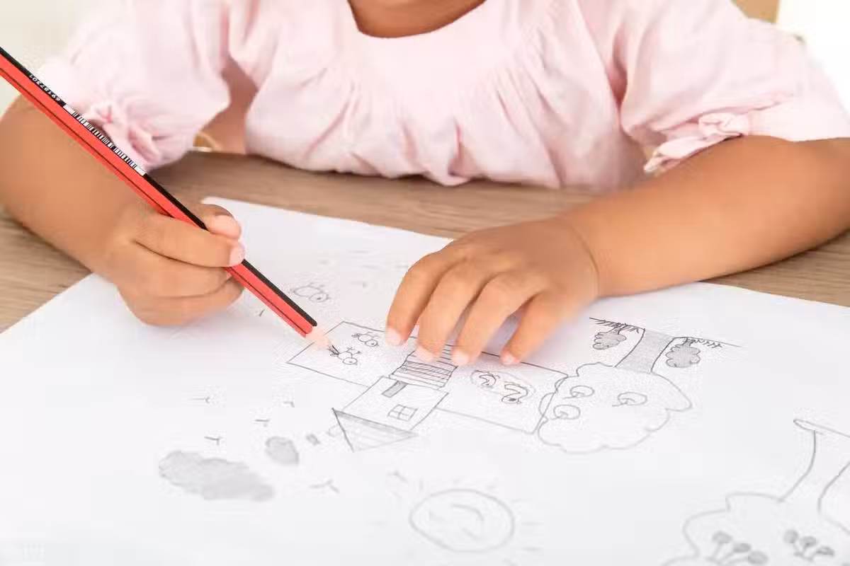 如果孩子「總是」在很大幅紙上卻只畫很小的物體,可能意味著孩子現階段比較內向或者比較自卑。