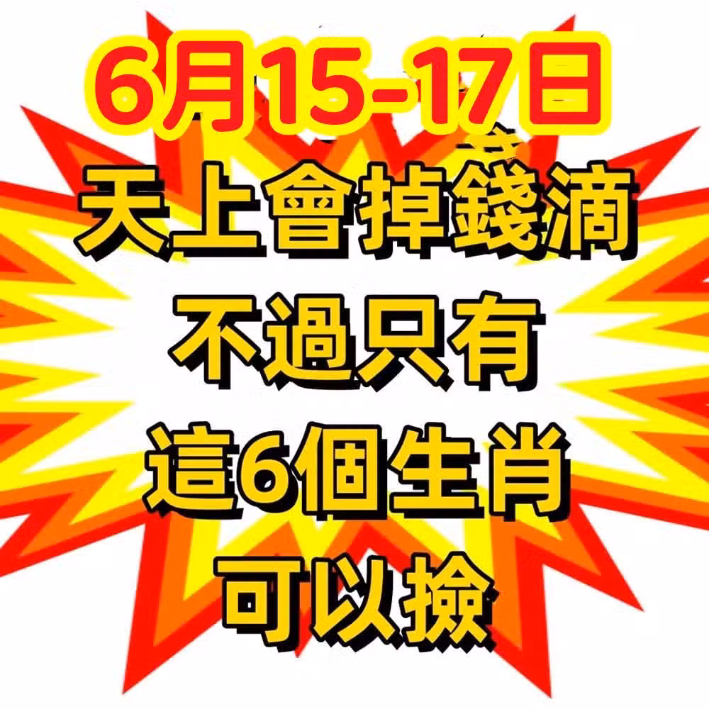 6月15到17日,天上會掉錢滴,不過只有這6個生肖可以撿!