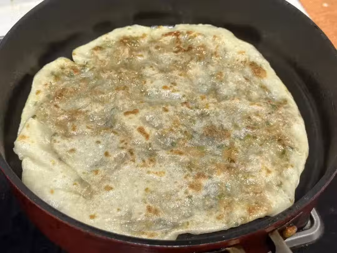 7、烙好的餅應及時密封保存以防止風乾。這些餅不僅柔軟勁道而且口感鮮美,即使放涼了也依然保持著良好的口感。無論是作為早餐還是午餐的主食都是極好的選擇。