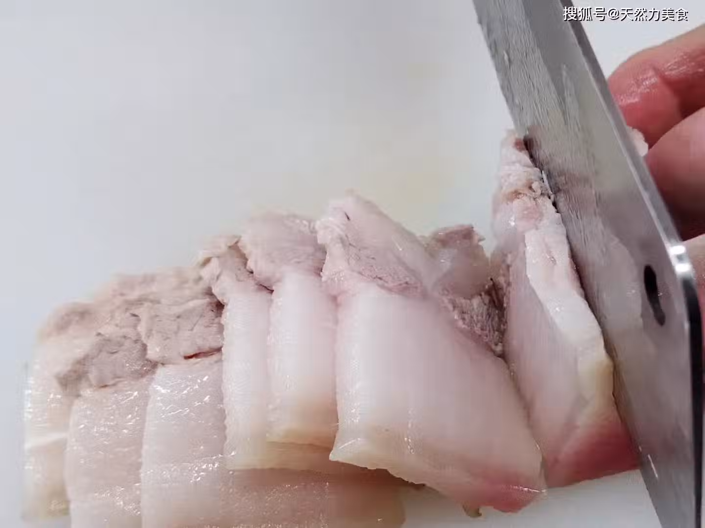 12、重新起鍋加水,香乾冷水下鍋,還要加8克食用鹽,然後開大火開始焯水,香乾焯水可以更好地去除香乾的豆腥味,也能讓香乾的口感更滑嫩好吃。