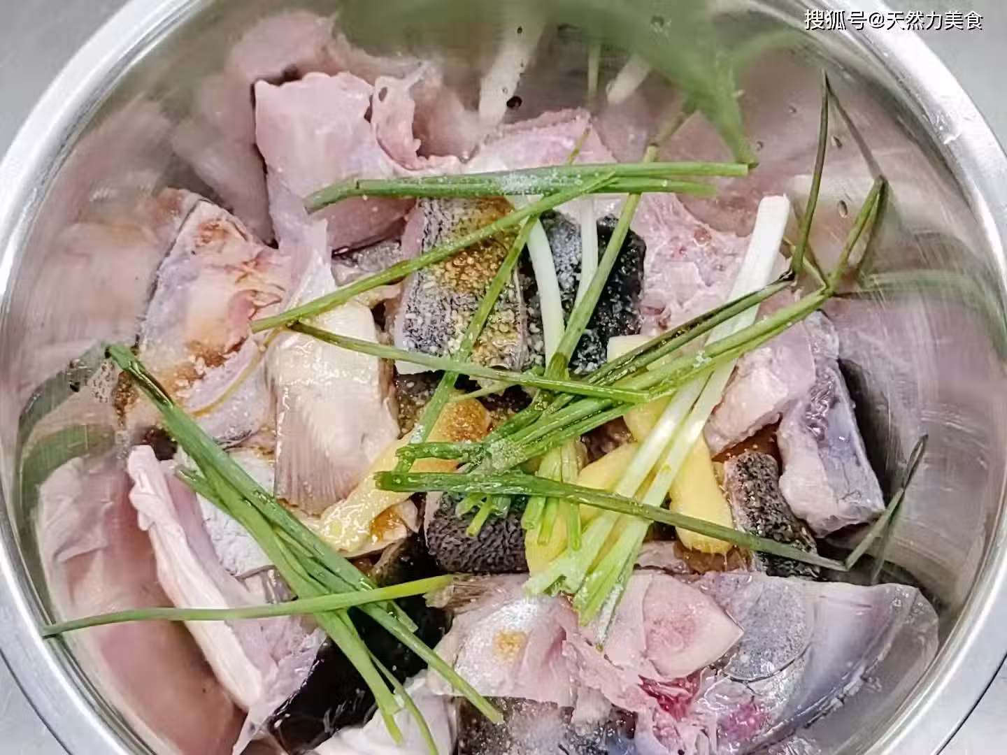 5、撈拌均勻後再加入5克澱粉,繼續撈拌均勻,讓所有的都能魚頭裹上一層薄薄的澱粉,撈拌均勻後放一旁腌制20分鐘。加澱粉可以鎖住魚頭中的水分不流失,在後期蒸製的時候不會水汪汪的,也能讓口感更滑嫩好吃。