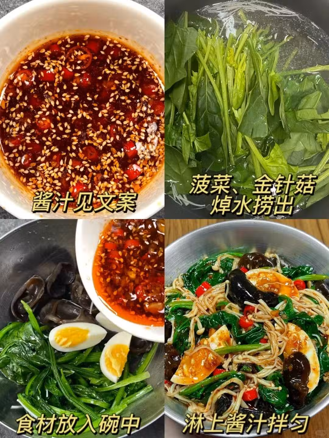 菠菜木耳拌金針菇,簡單好吃又掉秤,不愛吃菠菜的我愛上了這個吃法!