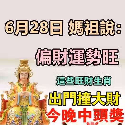 偏財運勢旺,6月28日出門走大財,今晚中頭獎的生肖