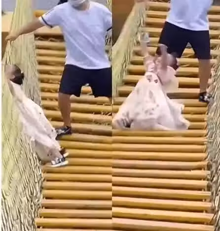 爸爸死命搖晃吊橋!女兒嚇哭手一鬆「縫隙掉下去」,真的悲劇了