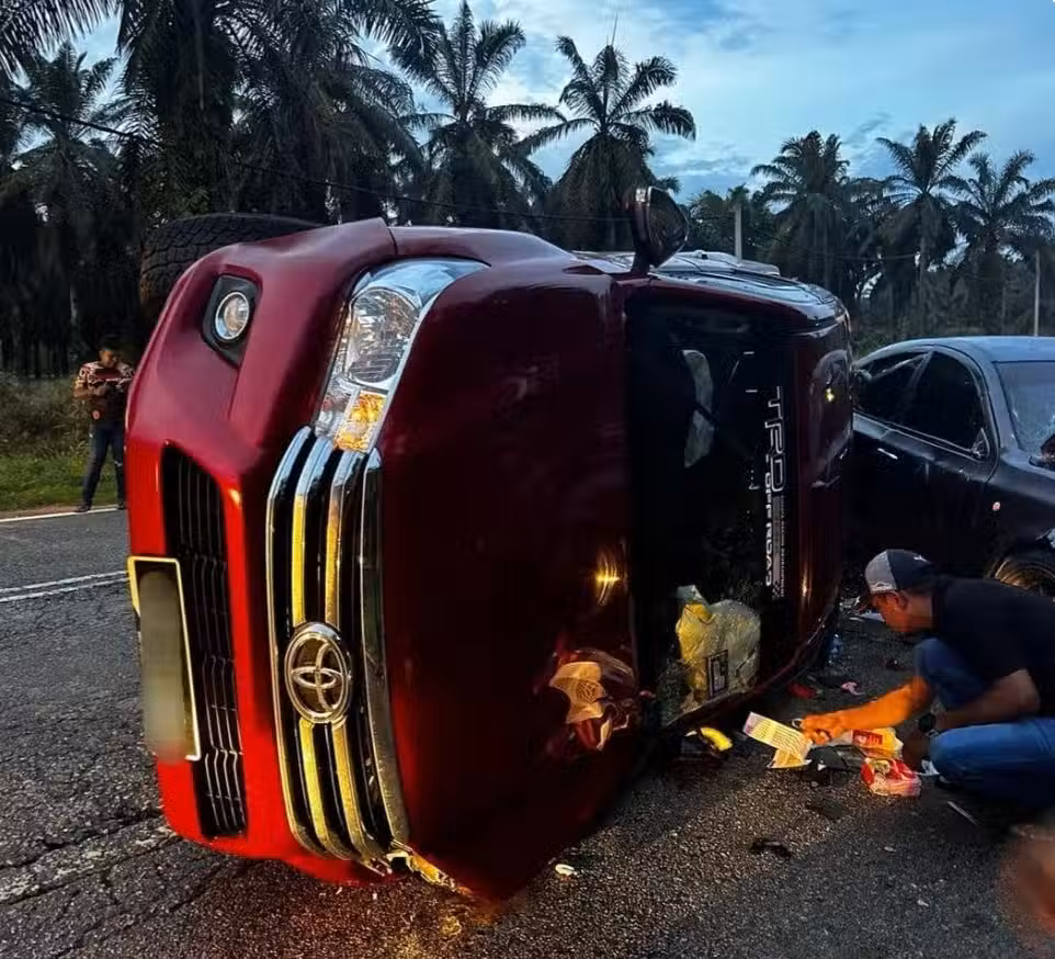 居鑾警區主任峇林助理總監今日發文告說,車禍涉及一輛豐田Hilux貨卡和一輛寶騰奔舒娜轎車,貨卡上有5人,奔舒娜轎車則有3人。