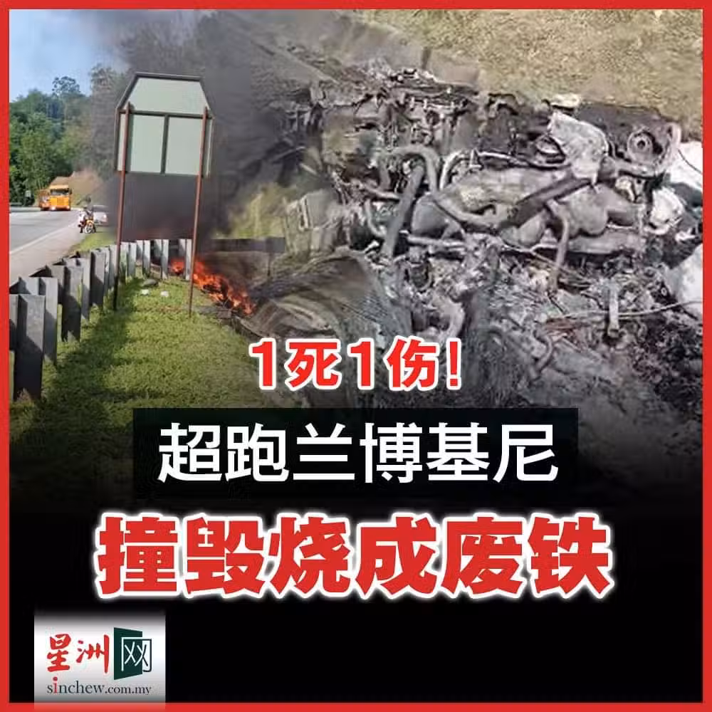 1死1傷 超跑蘭博基尼撞毀燒成廢鐵