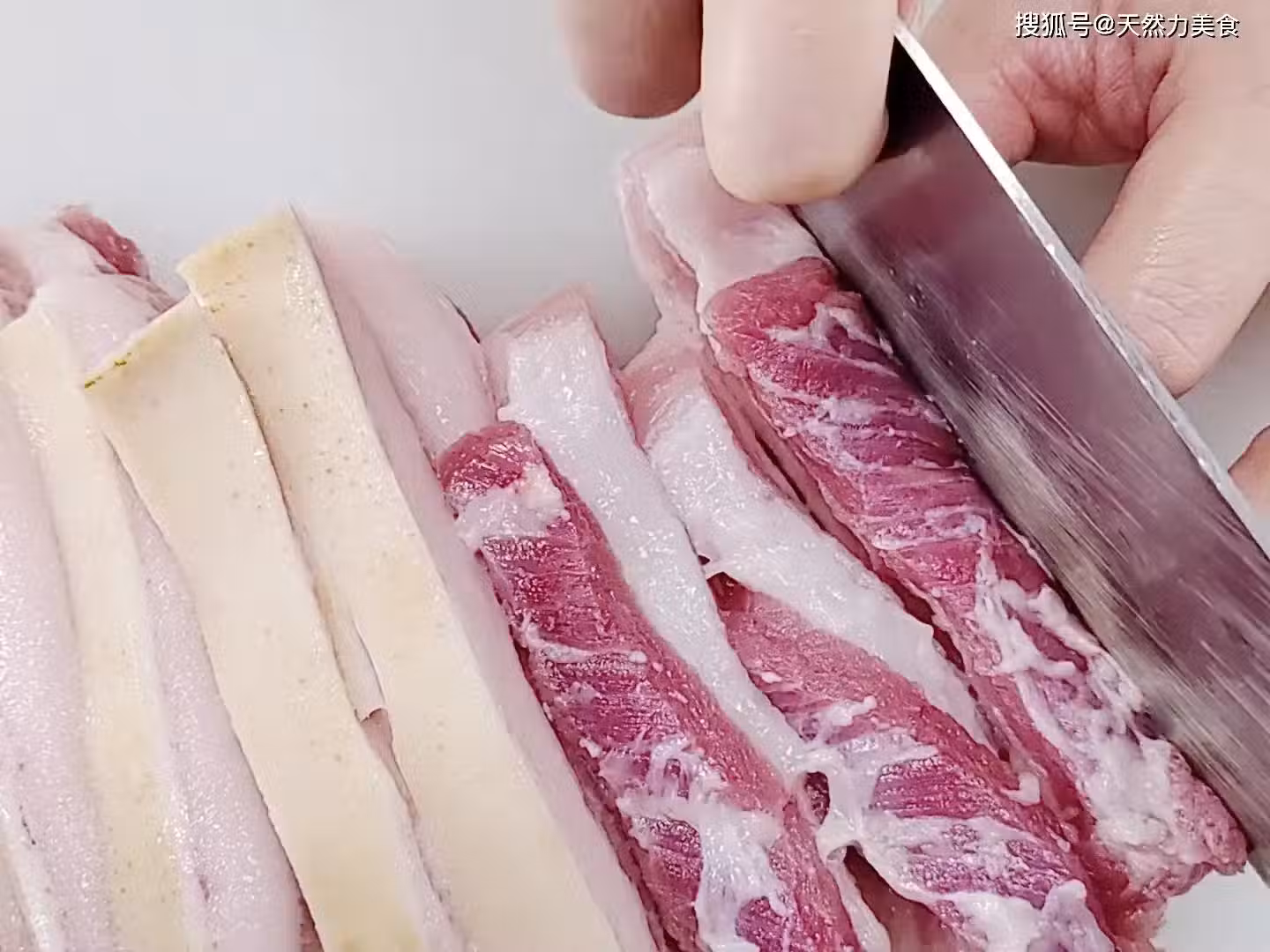 6、我們在切下五花的時候,這個肥肉和瘦肉容易散開,這個時候我們就要用繩子綁一下,這樣肥肉和瘦肉就不會分開了。
