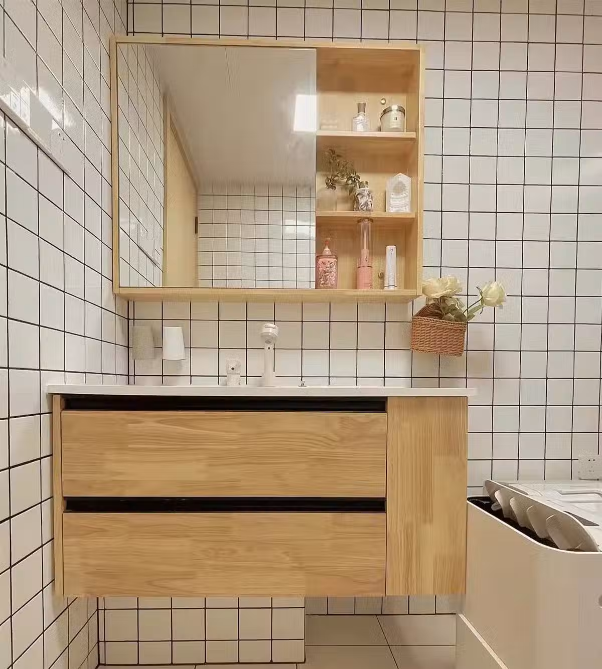 衛生間做了干濕分離設計,墻面白色方塊瓷磚,視覺上顯大也給人清爽的感覺,讓衛生間的使用感更加舒爽。