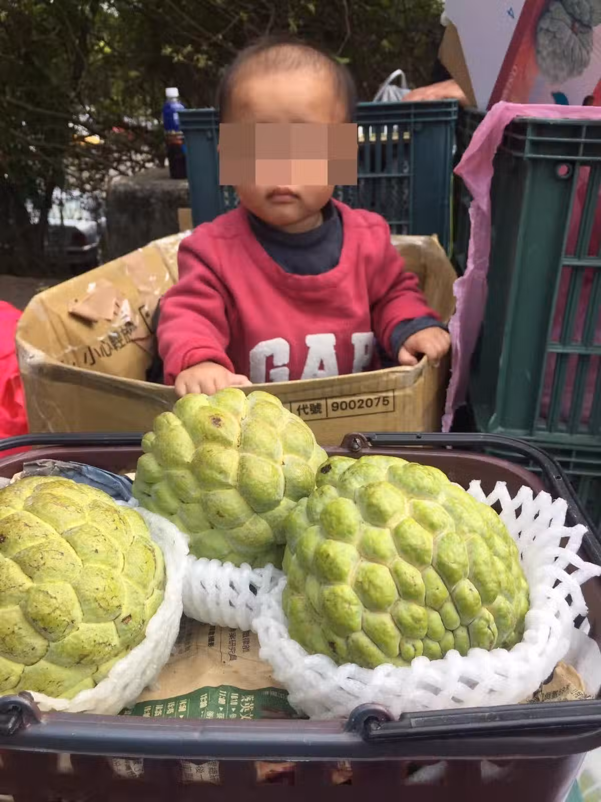 網友打聽媽媽的擺攤位址,李柏瑟回復:在虎頭山後段路邊,攤位對面有個賣杏仁茶的攤位。 同時稱贊道:釋迦質量很好,每箱價格在150-300元之間,具體要看釋迦的大小。