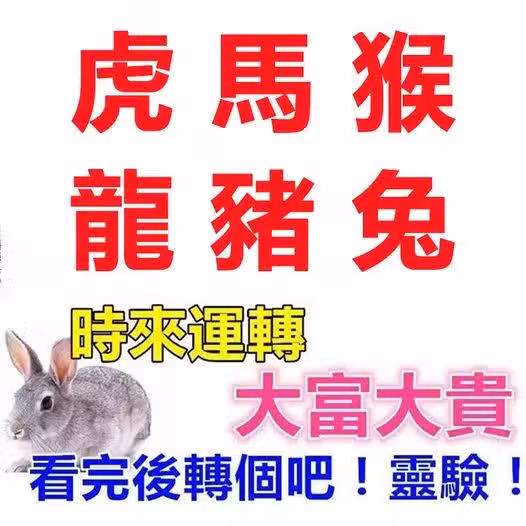 (虎馬猴龍豬兔)今年時來運轉,大富大貴,看完後就轉個吧