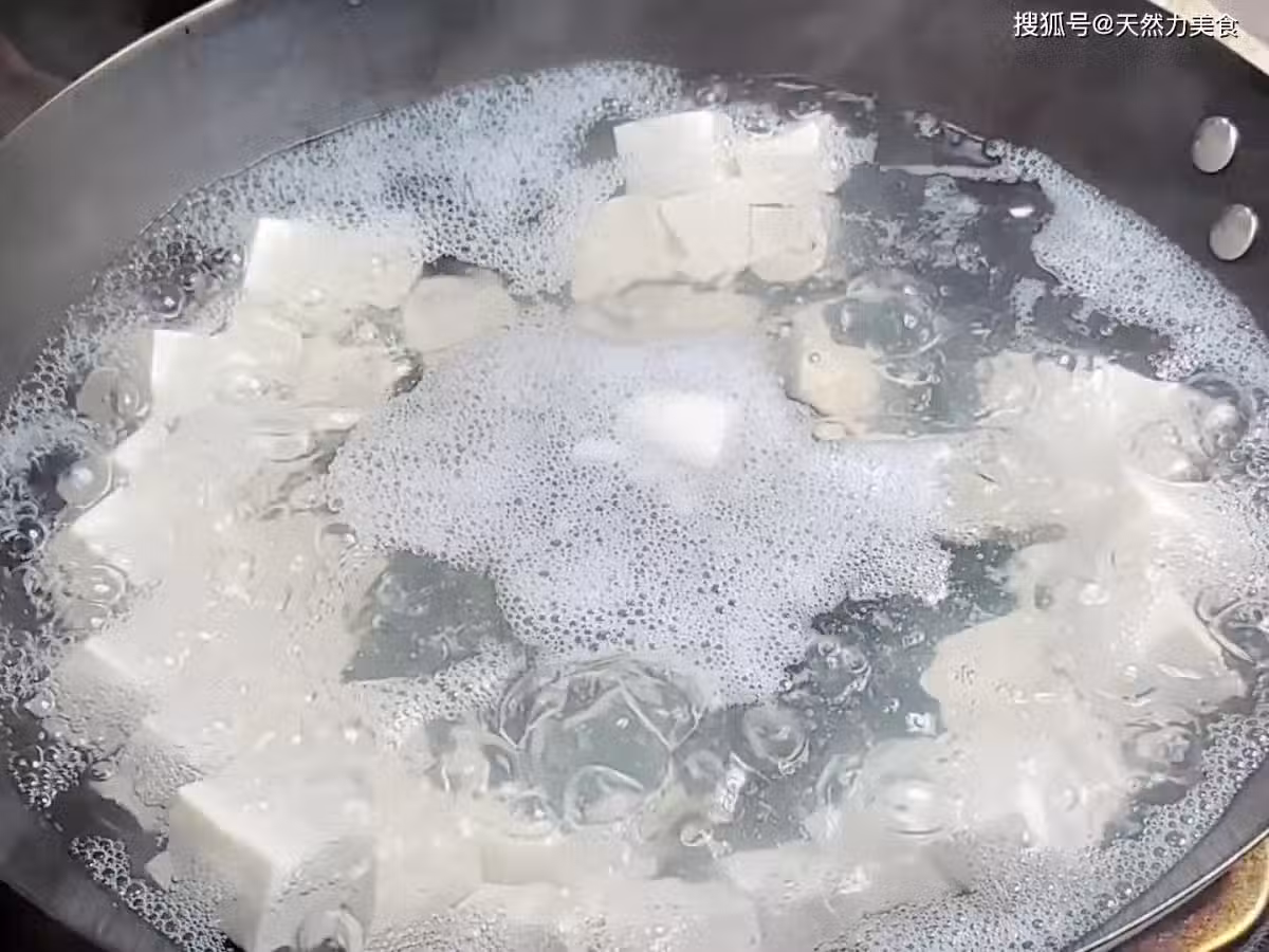 2、豆腐倒出後再倒進準備好的開水中浸泡著,這樣做的目的有2個,一個是防止豆腐相互粘在一起,還有一個就是讓豆腐充分吸足水分,讓豆腐變得更嫩,口感更好。