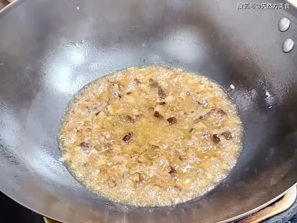 10、開大火把湯汁燒開後就可以打出倒在豆腐的上面,因為金針菇中還含有大量的水分,在經過加熱後,水分會滲出,所以我們在加湯汁的時候就不要加太多了。