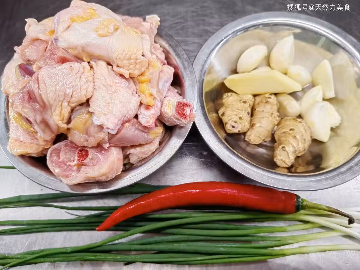 1、這是半隻叫攤主幫忙剁成了塊的雞,要想炒出來的雞肉好吃,那就不要焯水,但是必須得清洗,把雞肉放大盆中,加50克麵粉,還要加能沒過雞肉的清水,接著開始清洗1分鐘,加麵粉更能把雞肉上的雜質洗乾淨,也能把雞肉中的血水洗出來。