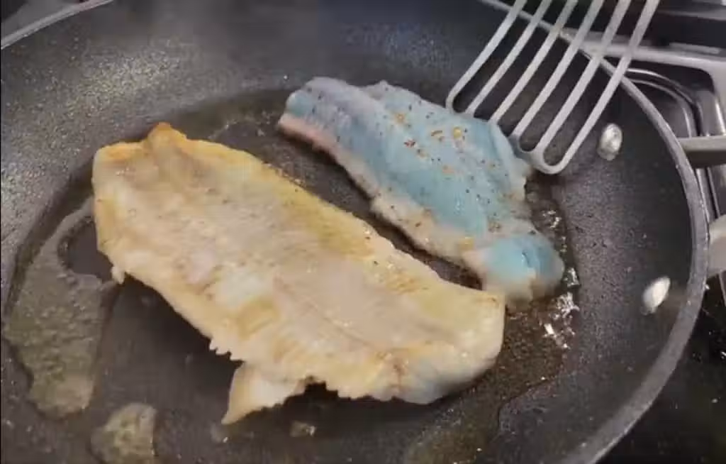釣到阿凡達魚!切開一看「魚肉竟是湖水藍色」,煎熟後模樣更特別😮
