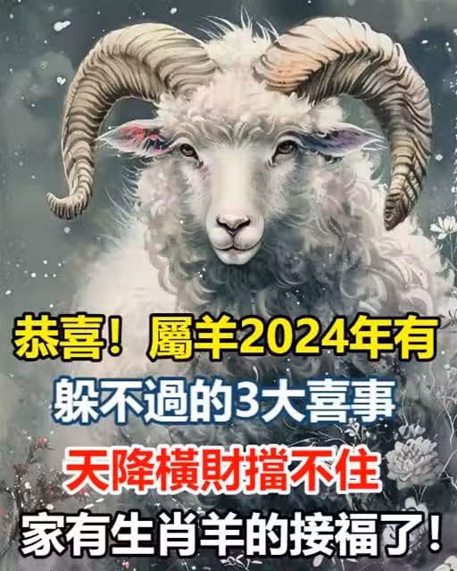 恭喜!屬羊2024年有「躲不過的3大喜事」 天降橫財擋不住「家有生肖屬羊」的接福了