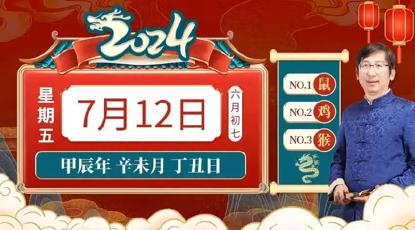 7月12日十二生肖【每日老黃曆】 紅榜生肖:鼠 雞 猴 需要注意:狗 馬 羊