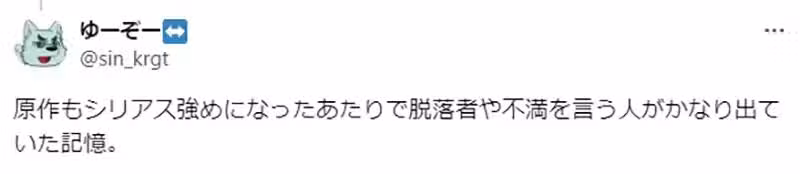 「我就是因此棄追漫畫。但與其說我討厭嚴肅劇情,不如說我覺得既然都畫得很像解決問題了,那就不用繼續看了吧……」
