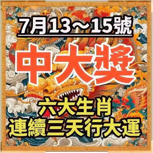 7月13 到 15號連續三天行大運,中大獎的生肖有你嘛!