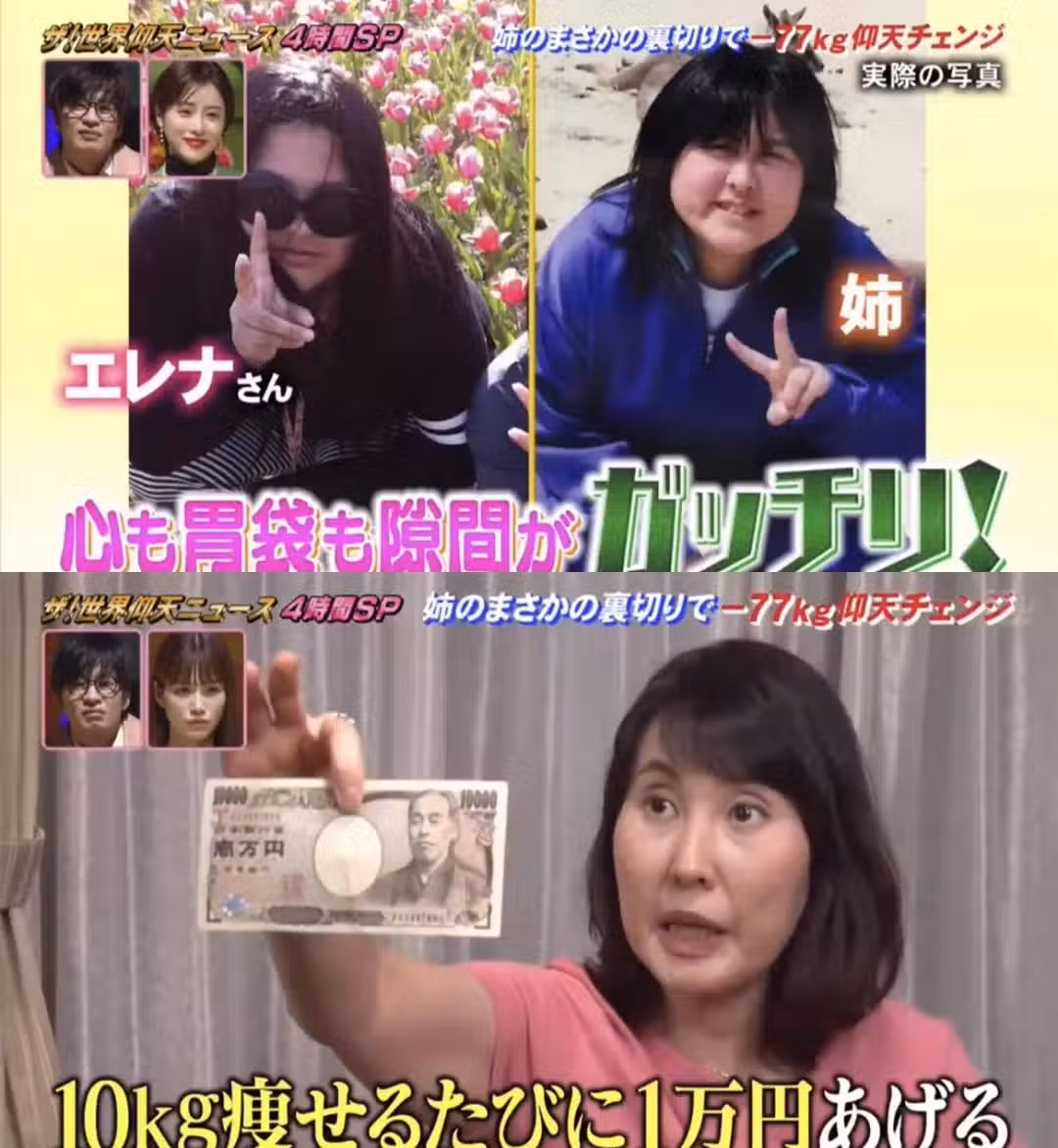 過於肥胖會影響健康,媽媽的朋友終於看不下去了,表示你們減肥了就能拿到這張1萬日元,能夠自由支配。不過就算是這樣,エレナ也不為所動。