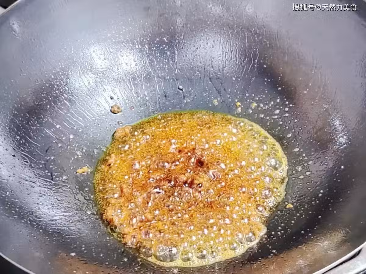 5、接著把蒜末和小米椒一起倒入鍋內,翻炒10秒,要把配料的香味炒出來,這2樣配料雖然不多,但是給菜肴帶來的味道卻是不可忽視的。