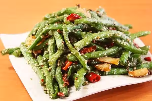 主料:四季豆、豬肉沫小半碗、干辣椒6個、花椒5、6粒、麻椒10粒左右、生抽適量、老抽適量、蔥姜蒜沫適量、鹽適量、糖少許