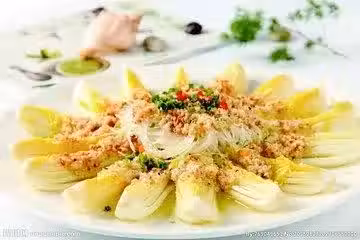 將制好的蒜蓉醬汁用湯匙,淋在娃娃菜身上