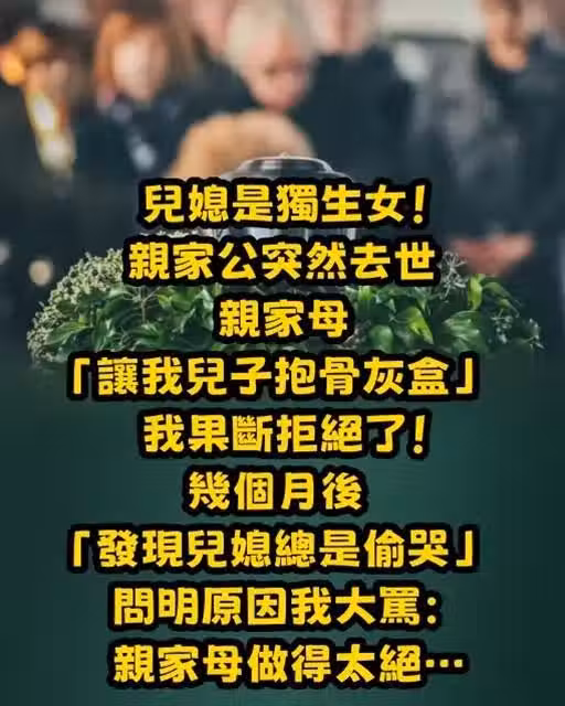 兒媳是獨生女!親家公突然去世,親家母「讓我兒子抱骨灰盒」我果斷拒絕了! 幾個月後「發現兒媳總是偷哭」問明原因我大罵:親家母做得太絕…