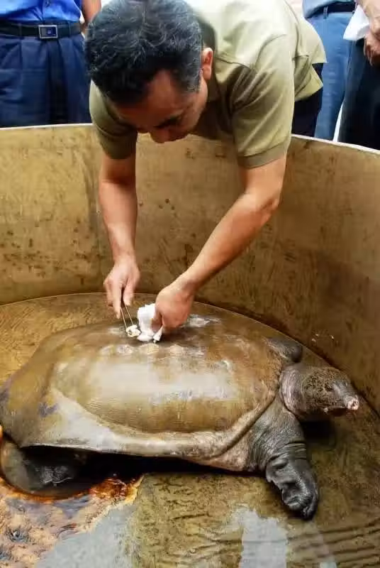 男子花25000元買一隻86斤酒店待烹飪大鱉,放生時大鱉頭部的一個動作,讓岸上人驚慌失措