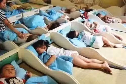 照片顯示,許多孩子在午睡時把被子踢開,身體裸露在外。
