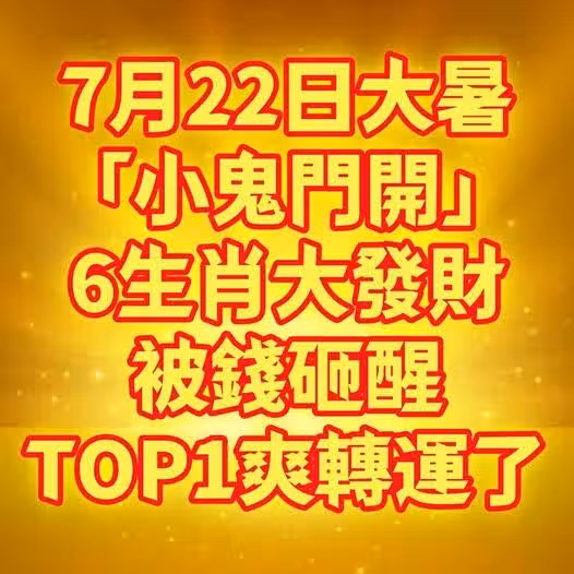 7月22日大暑「小鬼門開」6生肖大發財,被錢砸醒! TOP1爽到轉運了