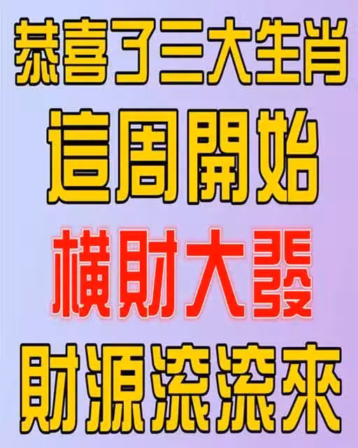 恭喜了三大生肖,這周開始橫財大發,準備好財源滾滾來~