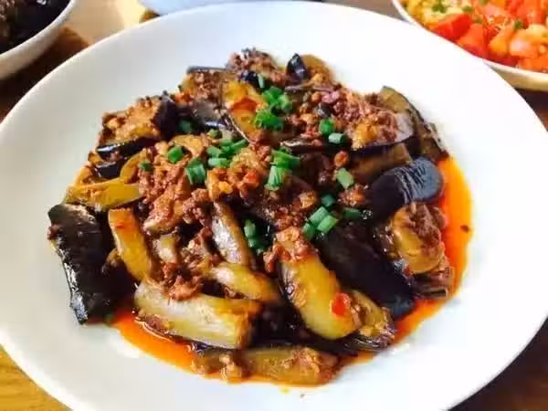 小貼士:1、長茄子要挑籽少的,不然炒的過程中容易變爛;2、豬肉稍微帶點肥的更香;3、黃醬一定要在熱油里爆一下才會香,放一點醬油一是上色二是再提一下香氣。